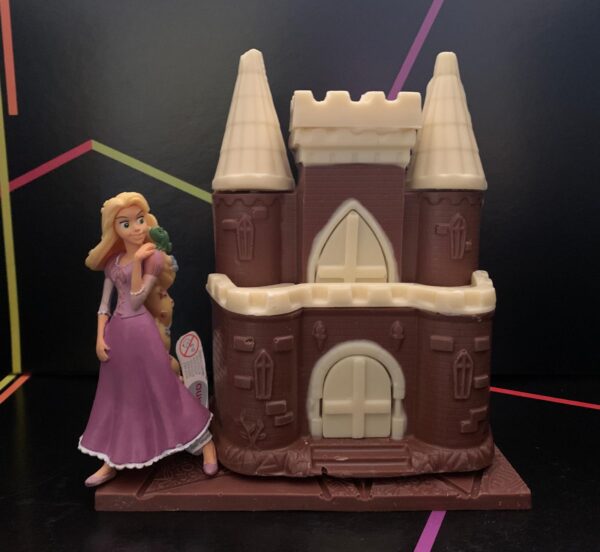 Figuras realizadas con chocolate con leche y blanco pesa 280 gramos medidas 18x14x18 cm . Va acompañado con su muñeca y su caja correspondiente .