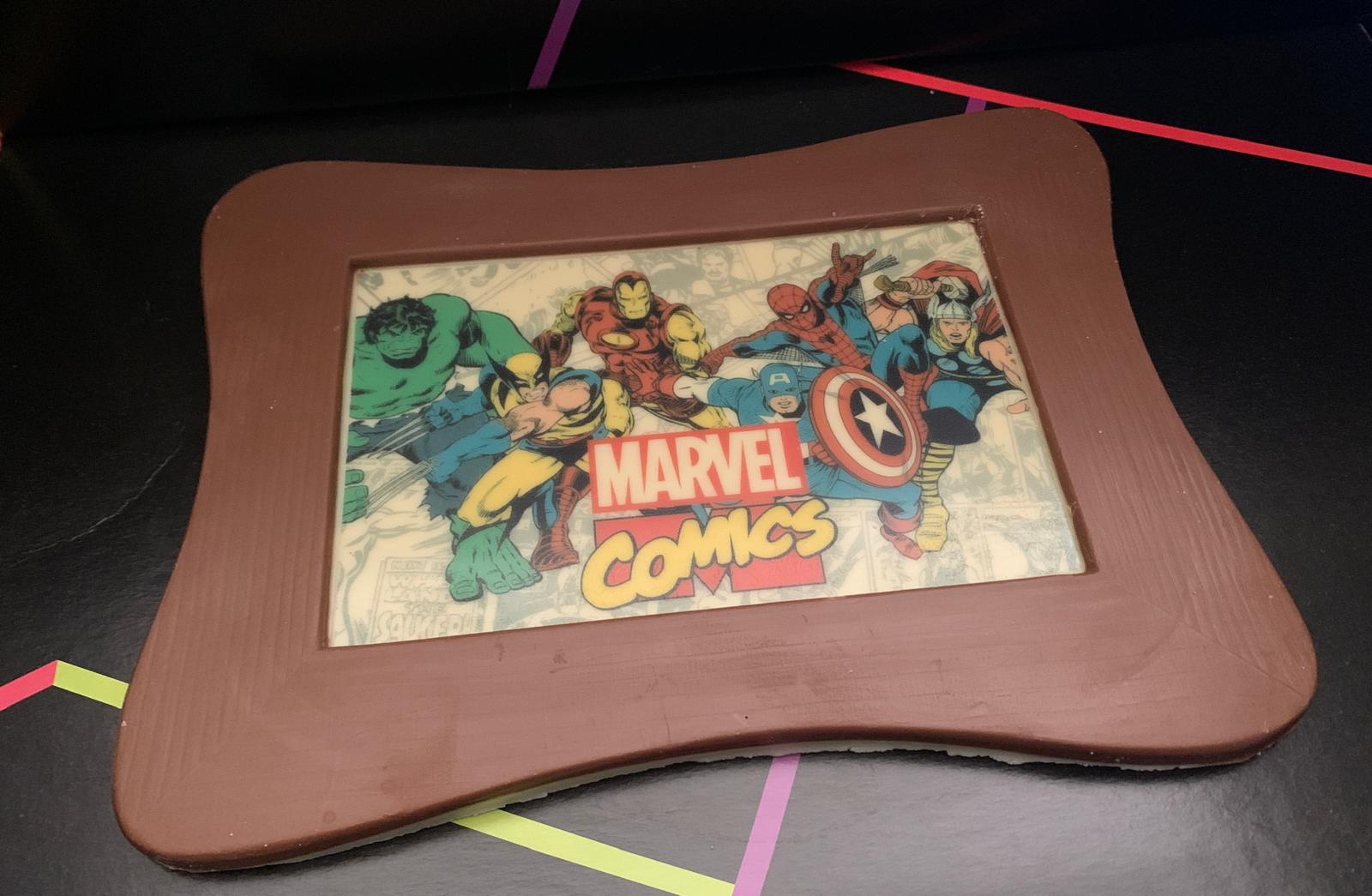 Figura realizada con chocolate con leche, blanco, pesa 220 gramos mide 21 cm. Se puede acompañar de algún muñeco si tenemos en stock con un coste aparte , para poder elegir tienes que ponerte en contacto con nosotros y viene acompañado con su caja correspondiente