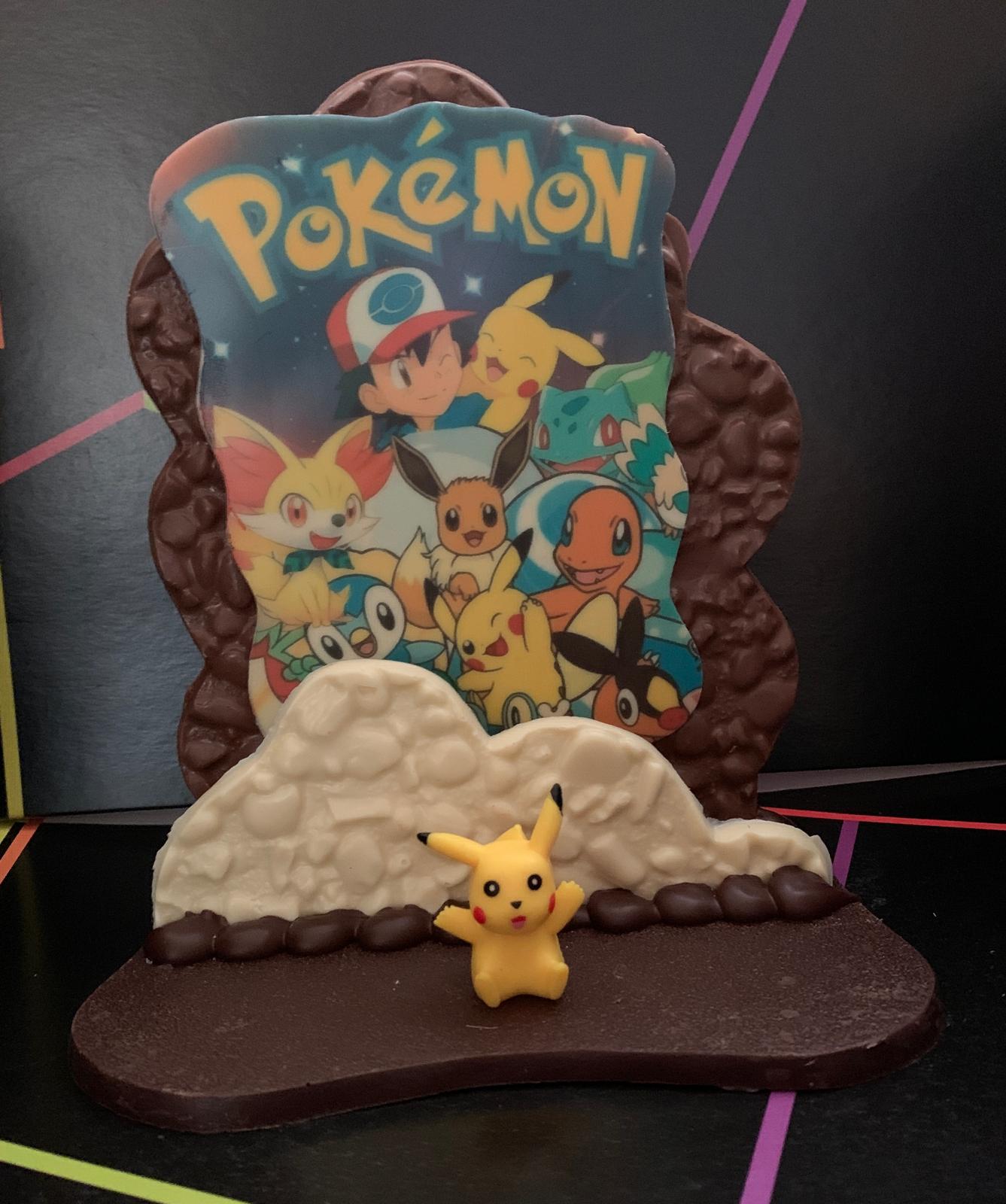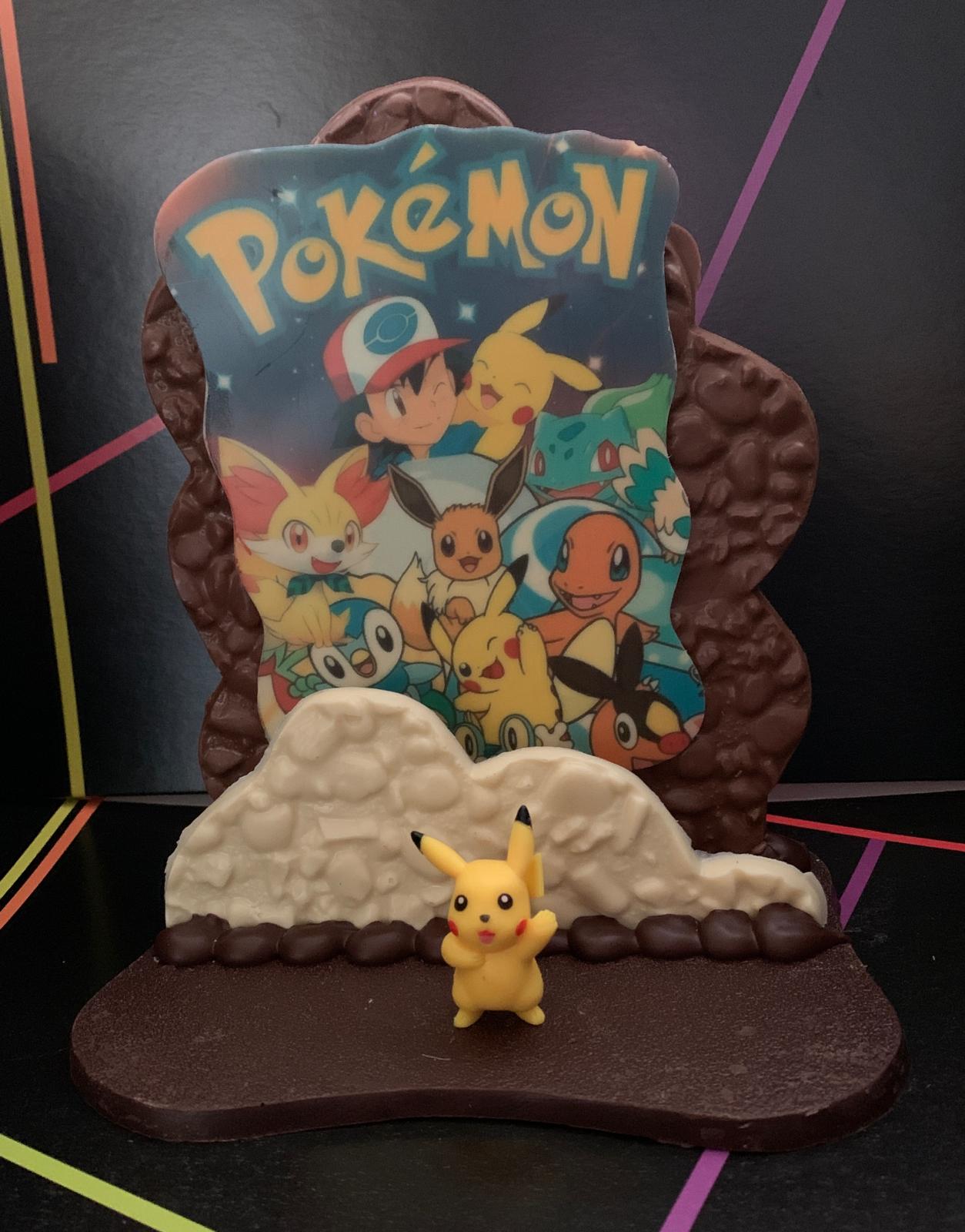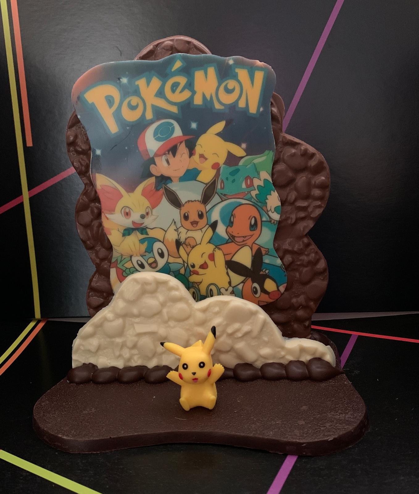 Serigrafía de chocolate realizada con chocolate blanco, con leche y negro , medidas 19x14x22cm. 480gr.Viene acompañado de su muñeco