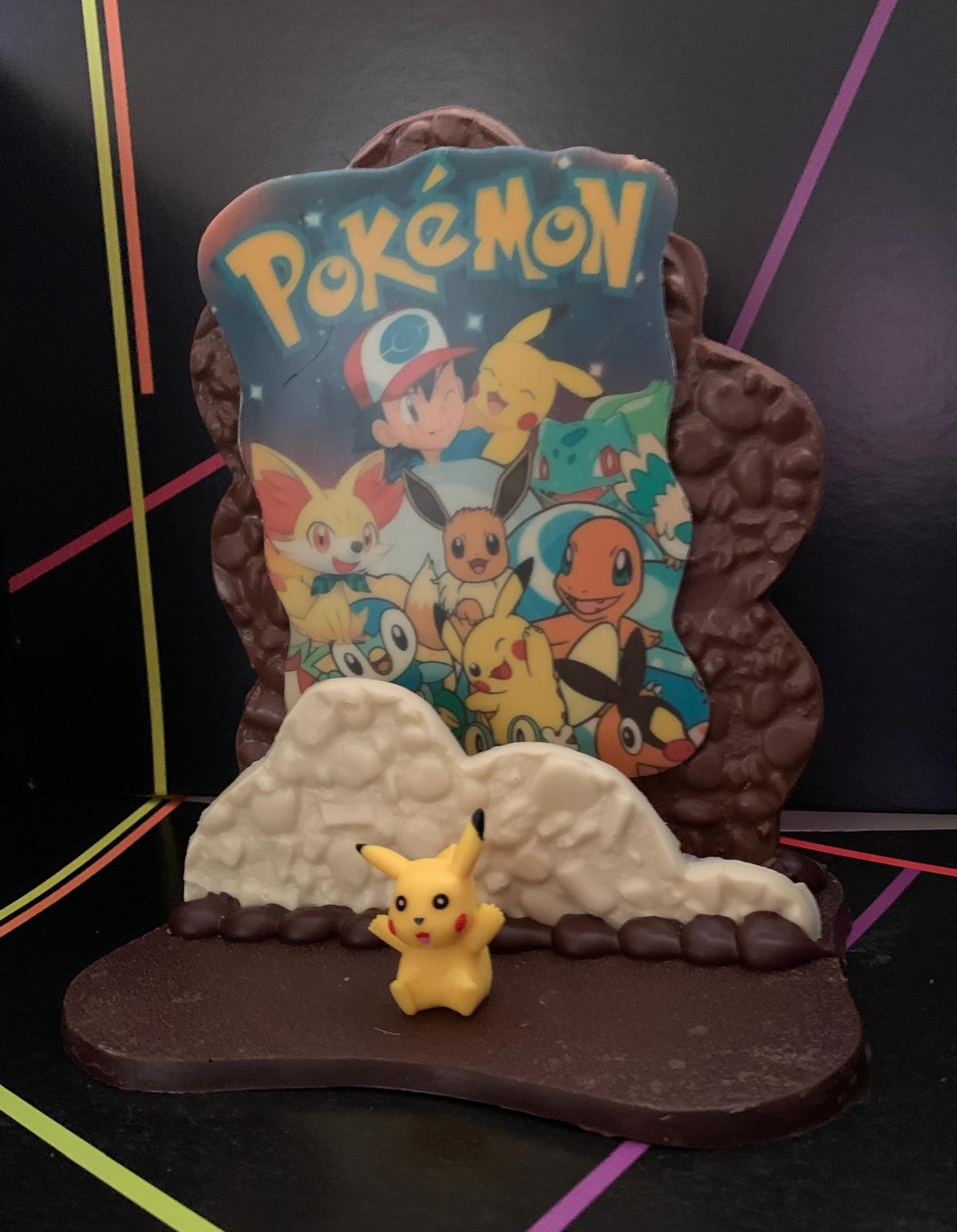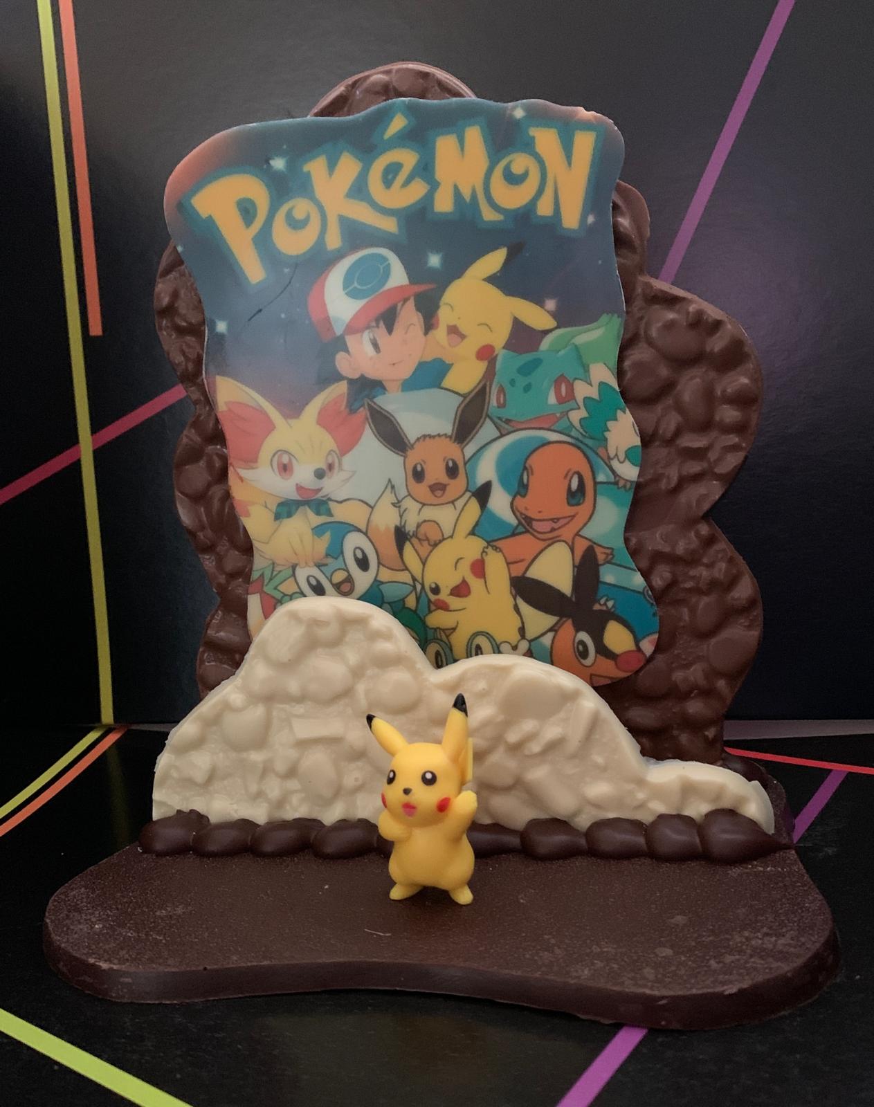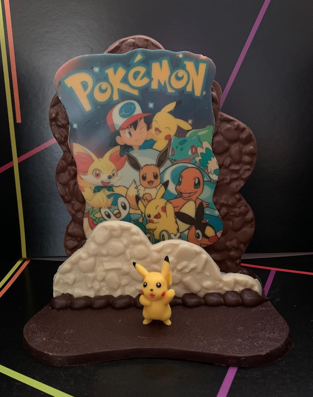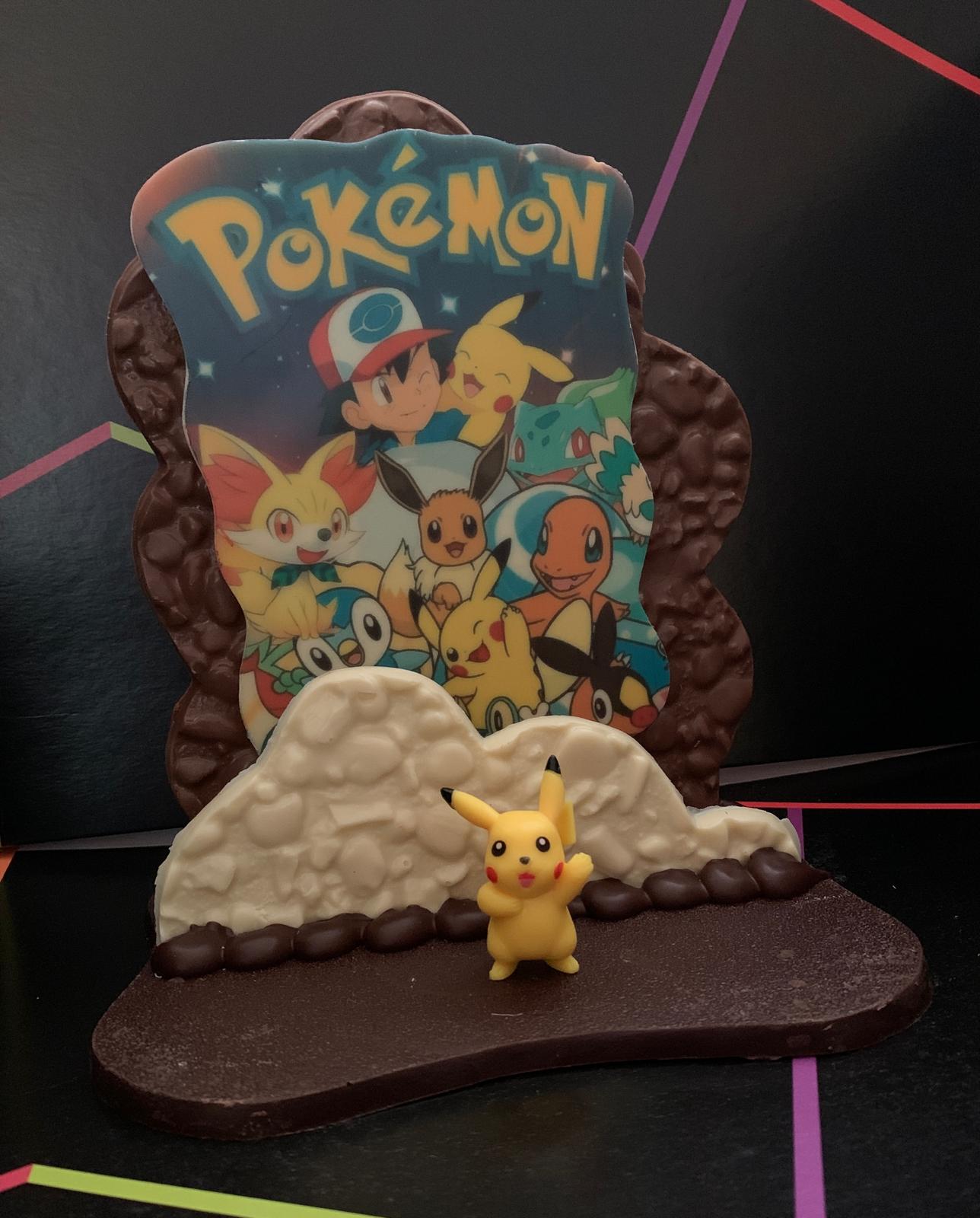 Serigrafía de chocolate realizada con chocolate blanco, con leche y negro , medidas 19x14x22cm. 480gr.Viene acompañado de su muñeco
