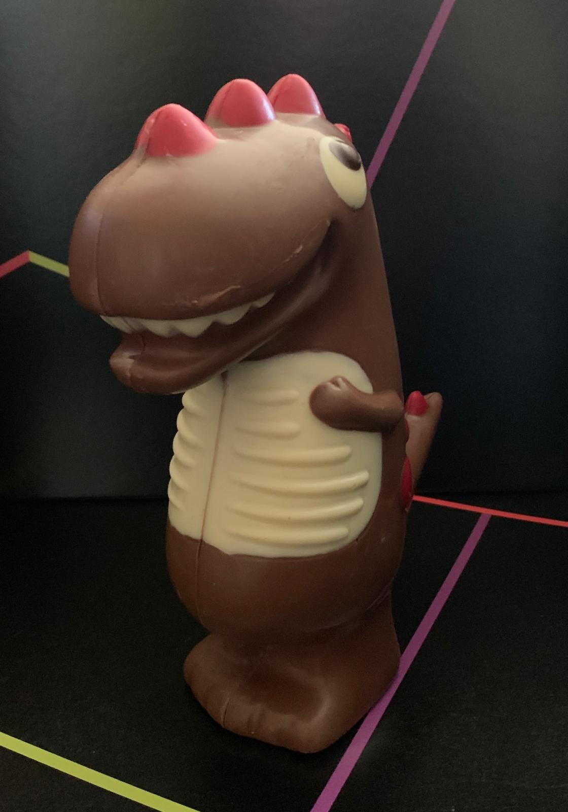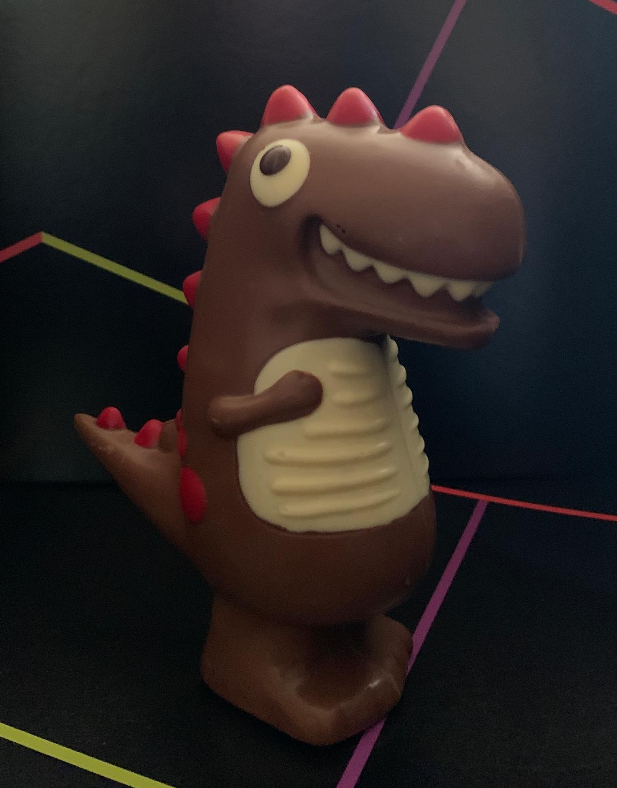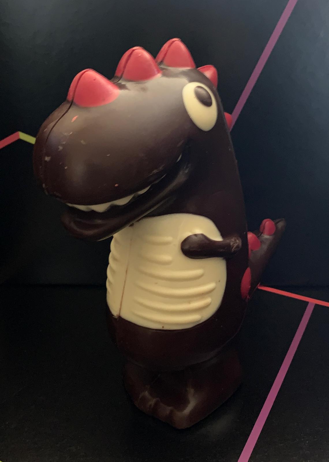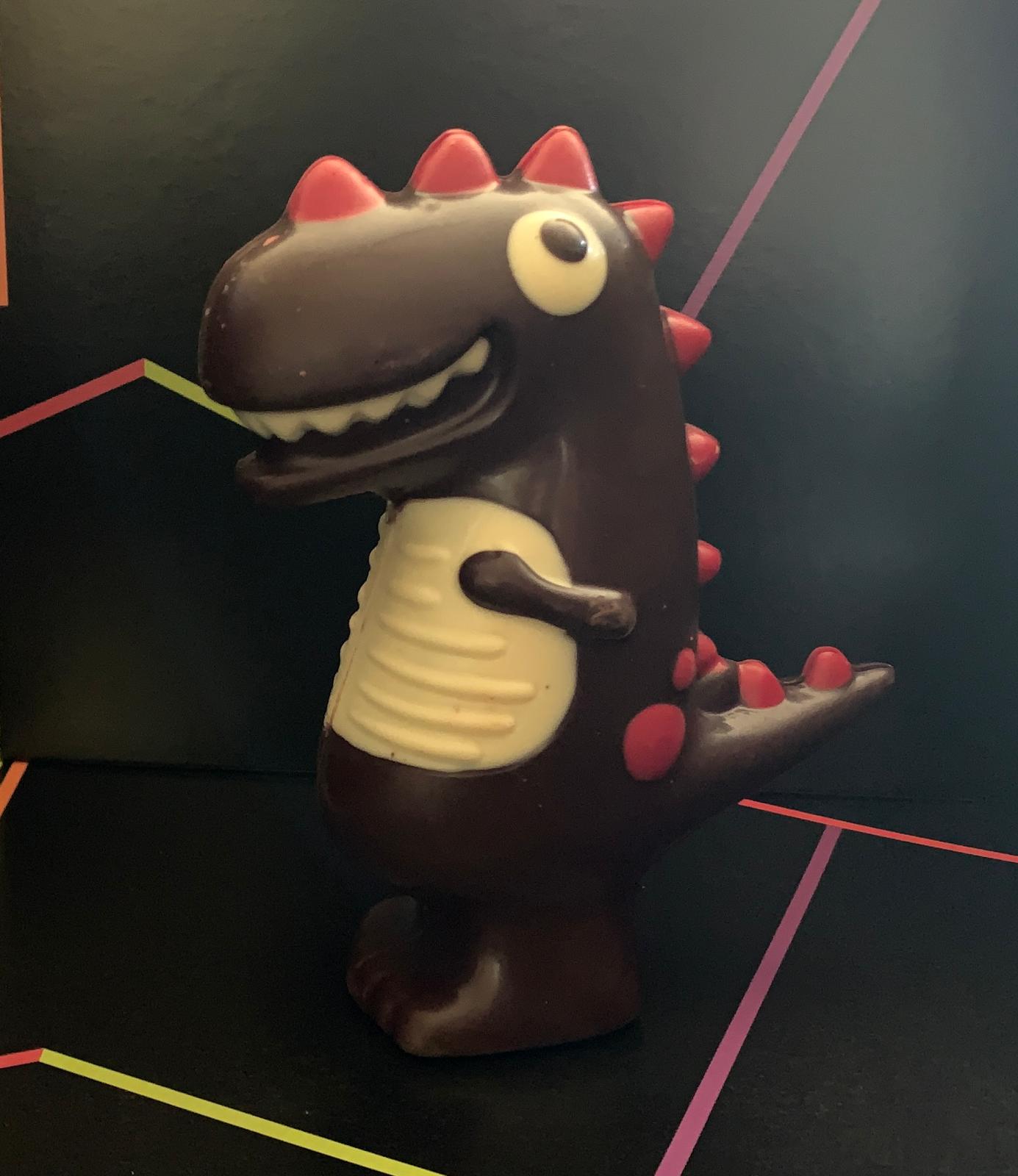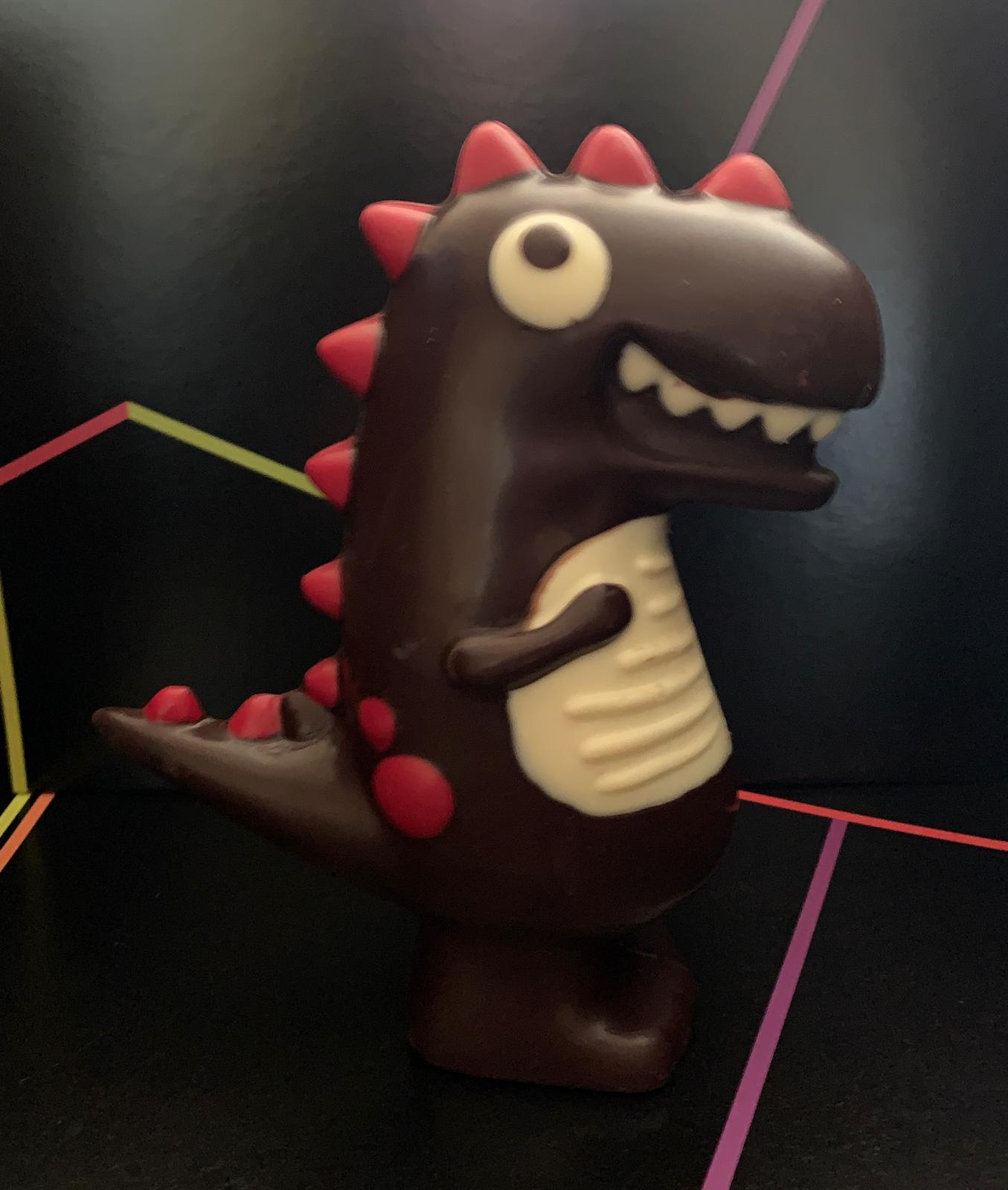 Figura realizada de un dragón con chocolate negro y chocolate con leche