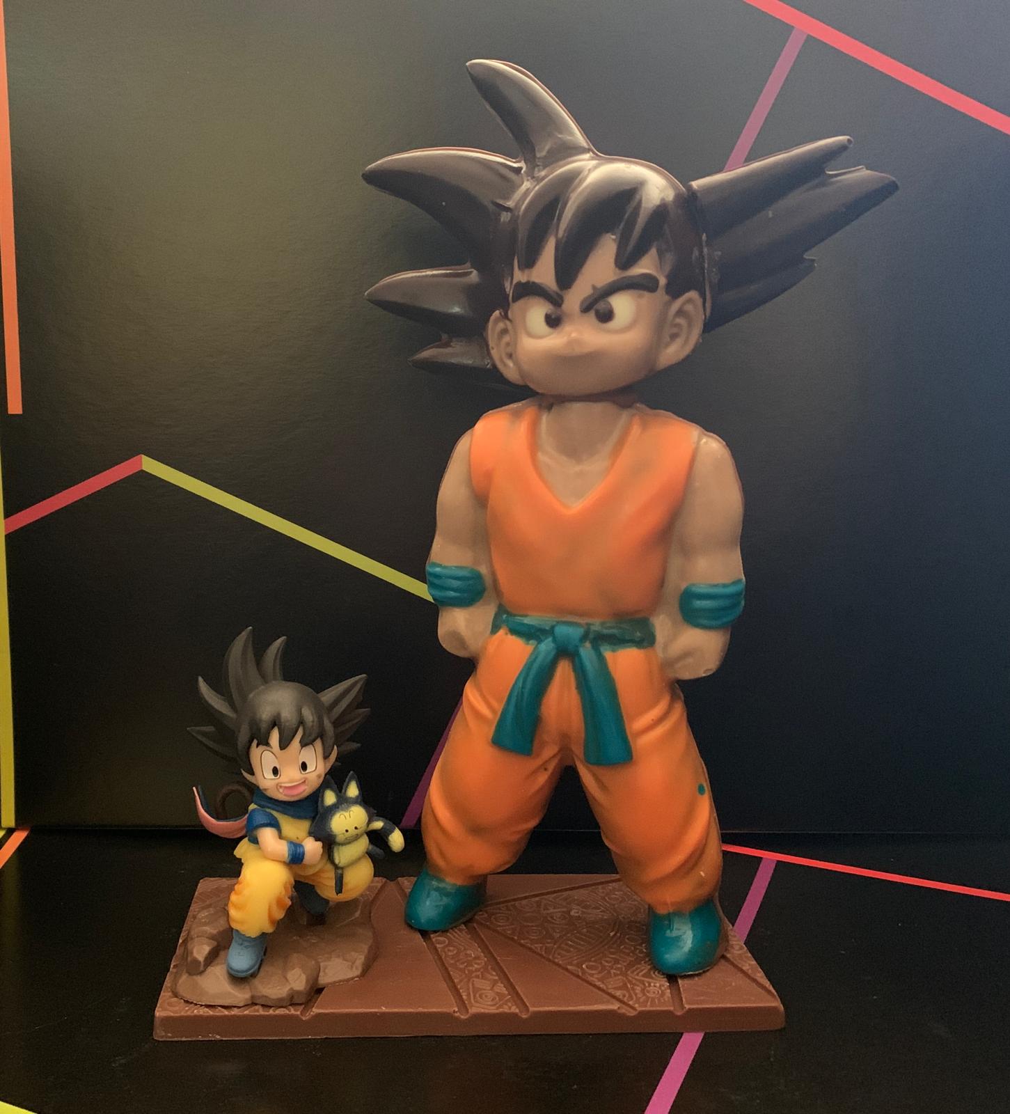 Figura realizada en chocolate con leche y blanco y pintada como el personaje Son goku , mide 15 cm. pesa 280 gramos ,viene acompañado con su caja y su muñeco .Se aconseja venir al local a recoger , si se envía será desmontada de la base para evitar que se despegue .